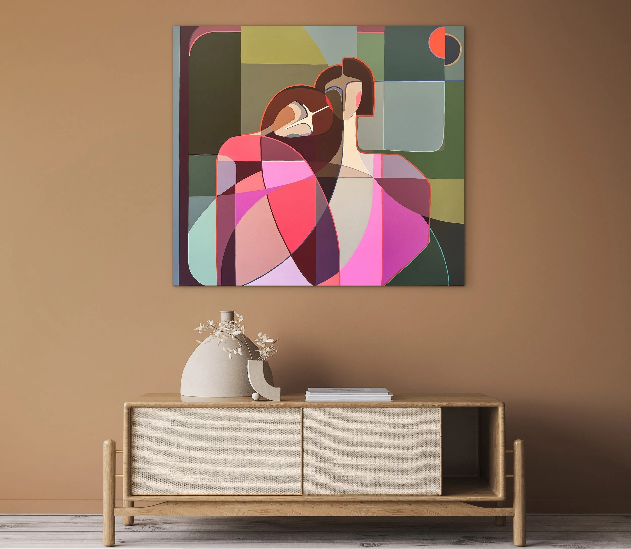Each original acrylic painting is a study in balance, where structured silhouettes meet a dynamic, palette.