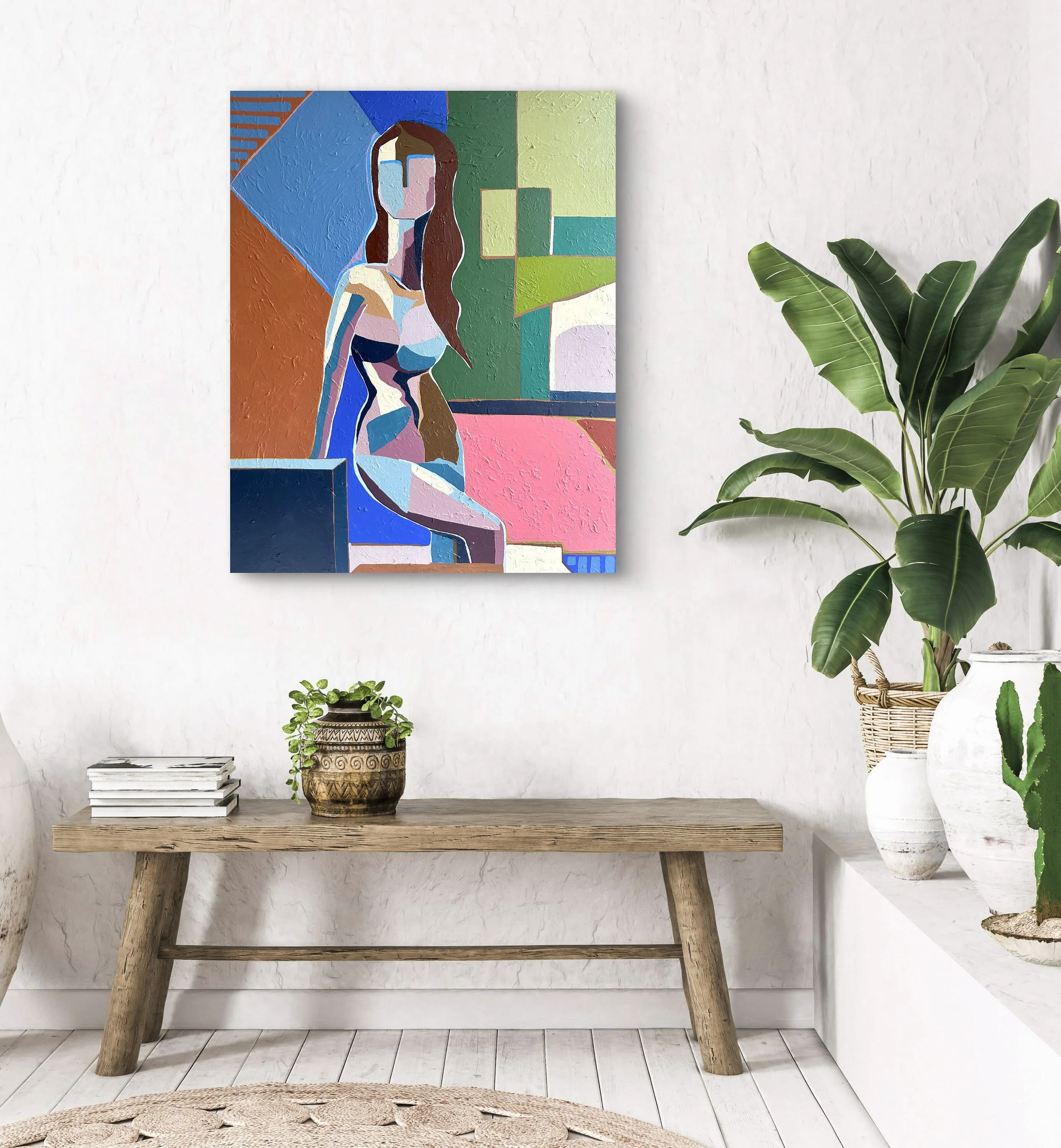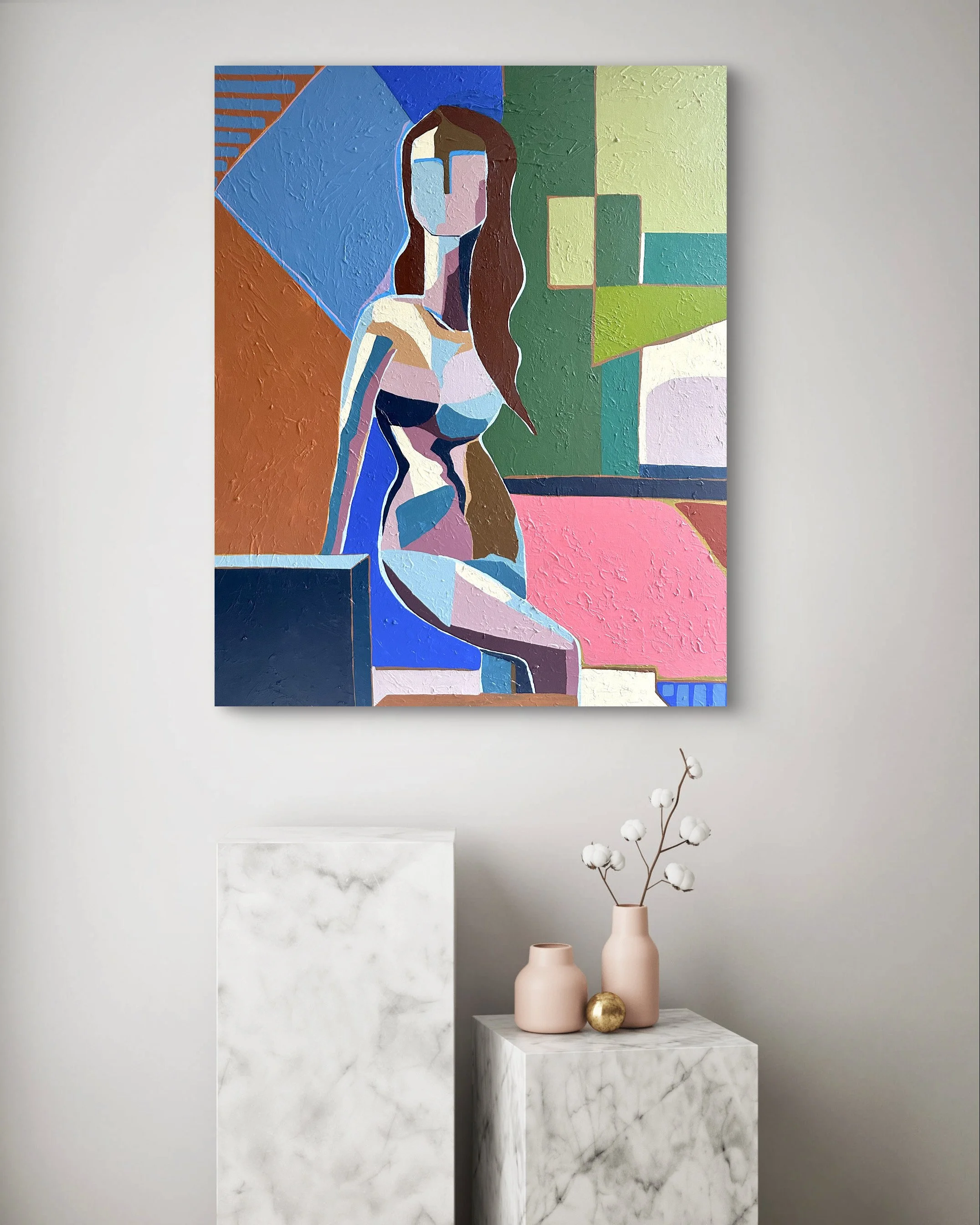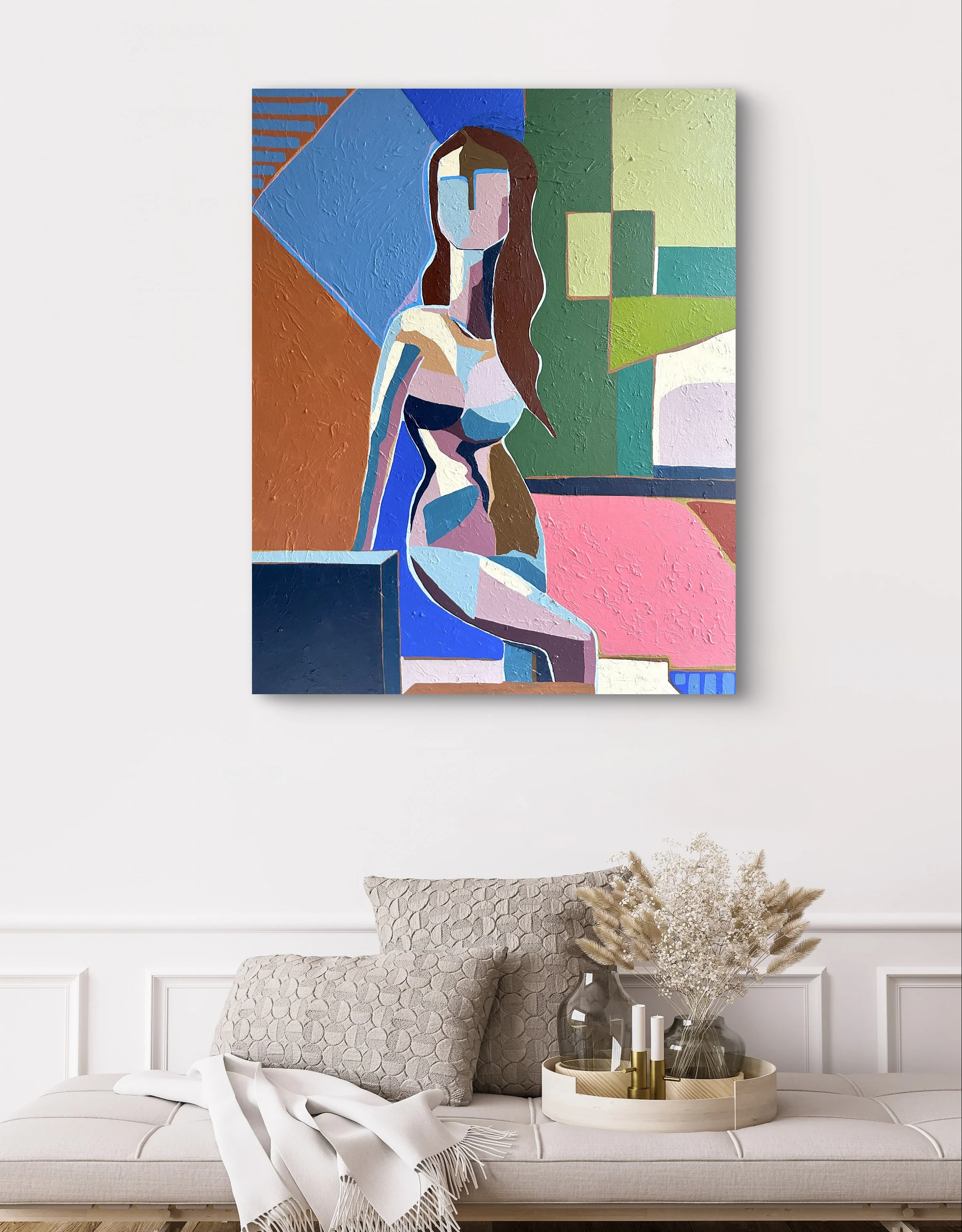 These sold artworks have found homes with collectors across Australia and beyond. Known for bold, geometric portraits and a soft yet striking tonal palette, my work explores feminine strength with a mid-century modern edge. Featured in British Vogue and Art Edit.